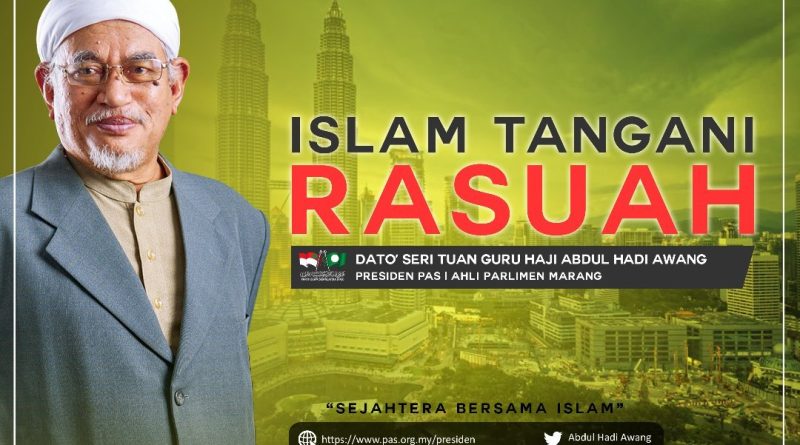 Saya disoal dalam ceramah di Universiti Nanyang beberapa tahun yang lalu. Kenapa tidak dimasukkan rasuah dalam kesalahan Hudud dan Qisas?