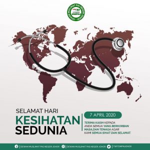 Barisan Kepimpinan Dewan Muslimat PAS Negeri Johor mengucapkan Selamat Hari Kesihatan Sedunia pada hari ini 7 April 2020.