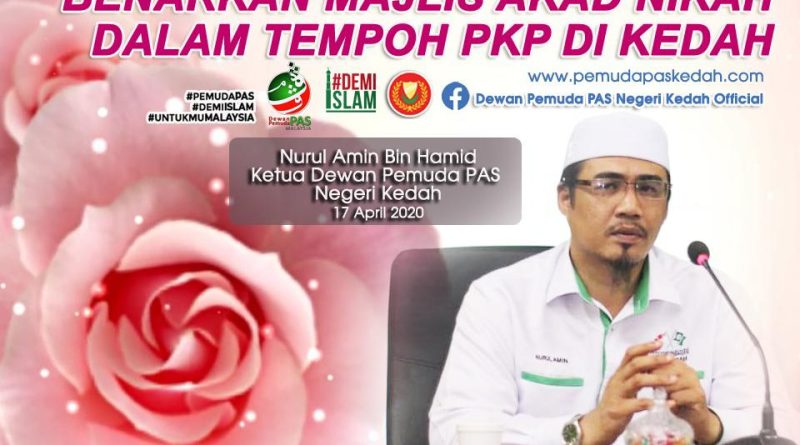 Dewan Pemuda PAS Kedah hari ini telah menghantar surat kepada Dato’ Paduka Mufti Negeri Kedah berhubung cadangan supaya majlis akad nikah di negeri Kedah dibenarkan semula dalam tempoh PKP dengan kaedah dan peraturan ketat seperti digariskan oleh KKM dan MKN.