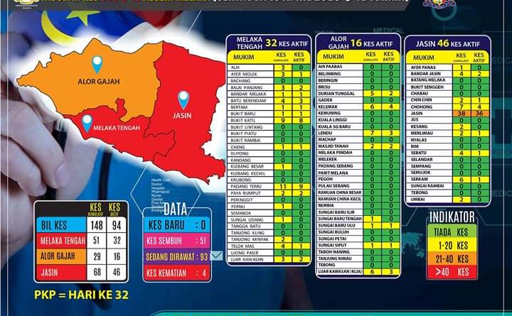 Laporan itu juga menunjukkan bahawa Alor Gajah masih di dalam ‘kategori jingga’ sementara Jasin dan Melaka Tengah berada dalam ‘kategori merah’.
