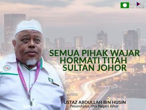 KENYATAAN MEDIA : SEMUA PIHAK WAJAR HORMATI TITAH SULTAN JOHOR 1. Badan Perhubungan PAS Negeri Johor (PAS Johor) memandang serius