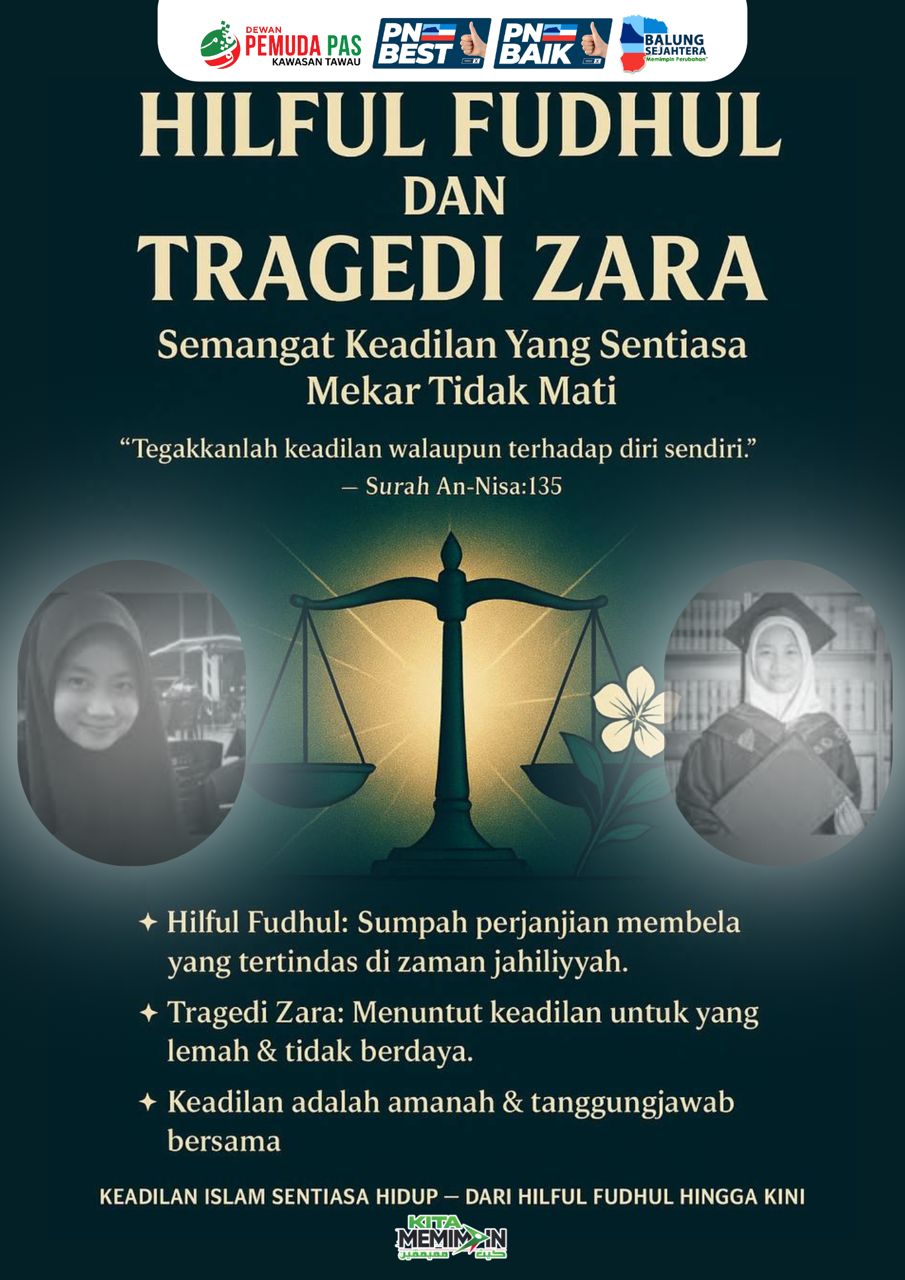 Selagi ada Zara, selagi ada mereka yang dizalimi, kita semua memikul amanah untuk tidak berdiam diri. Inilah semangat Hilful Fudhul yang tidak pernah lapuk — semangat yang mesti terus hidup dalam setiap denyut nadi masyarakat.