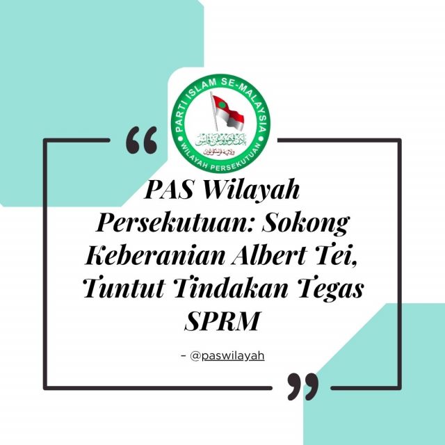 PAS Wilayah Persekutuan: Sokong Keberanian Albert Tei, Tuntut Tindakan Tegas SPRM