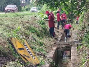 “Longkang berhampiran simpang Pinang Sebatang itu sudah sekian lama tidak diurus dengan baik sehingga dipenuhi semak samun dan mengakibatkan aliran air tersekat.
