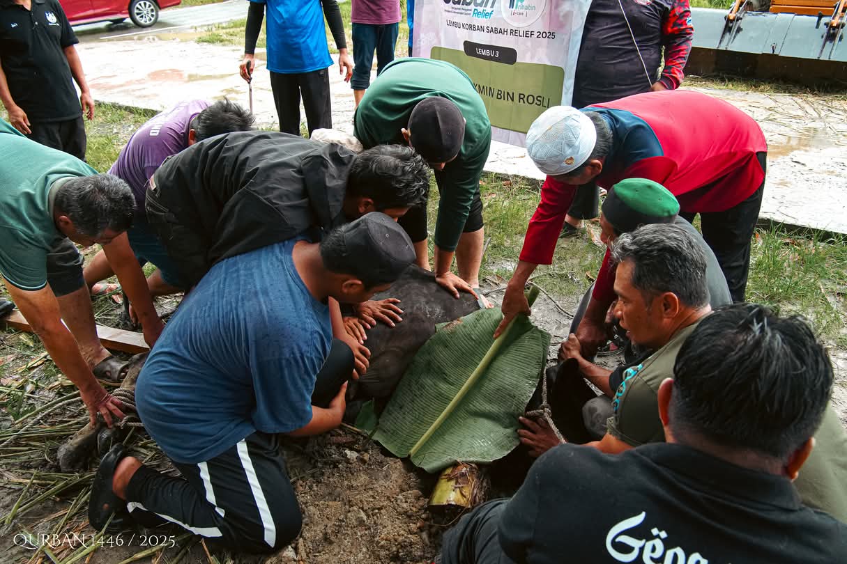 “Program Korban Perdana ini dilaksanakan secara gotong-royong melibatkan aktiviti menyembelih, melapah dan mengedar daging korban dengan kerjasama PAS Kawasan Sepanggar, NGO-NGO dan orang-orang kampung,” kata Datuk Dr Aliakbar Gulasan yang merupakan Ahli Dewan Undangan Negeri (Adun) Sabah.
